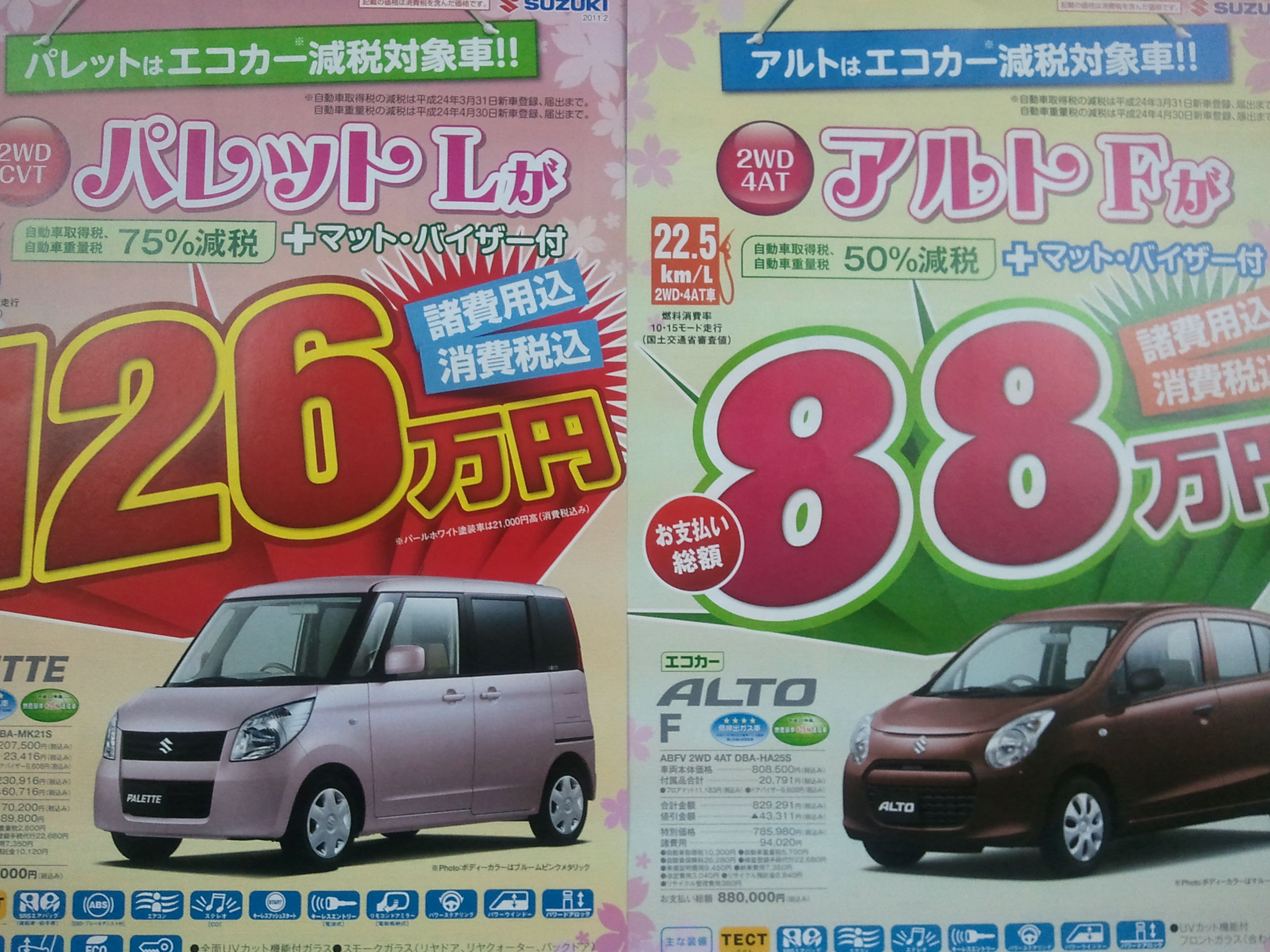 パレット諸費用込み126万円、アルトが88万円!
